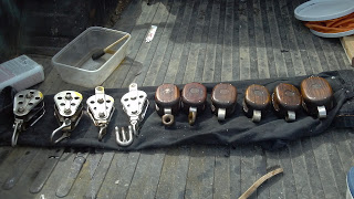 | All the running blocks were soaked in linseed oil. |