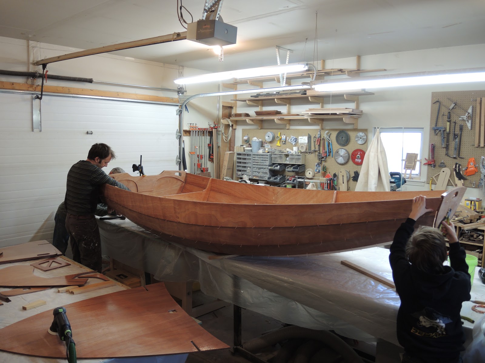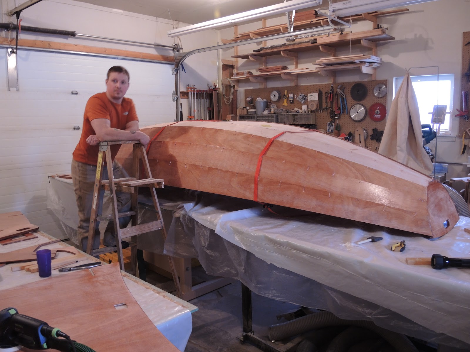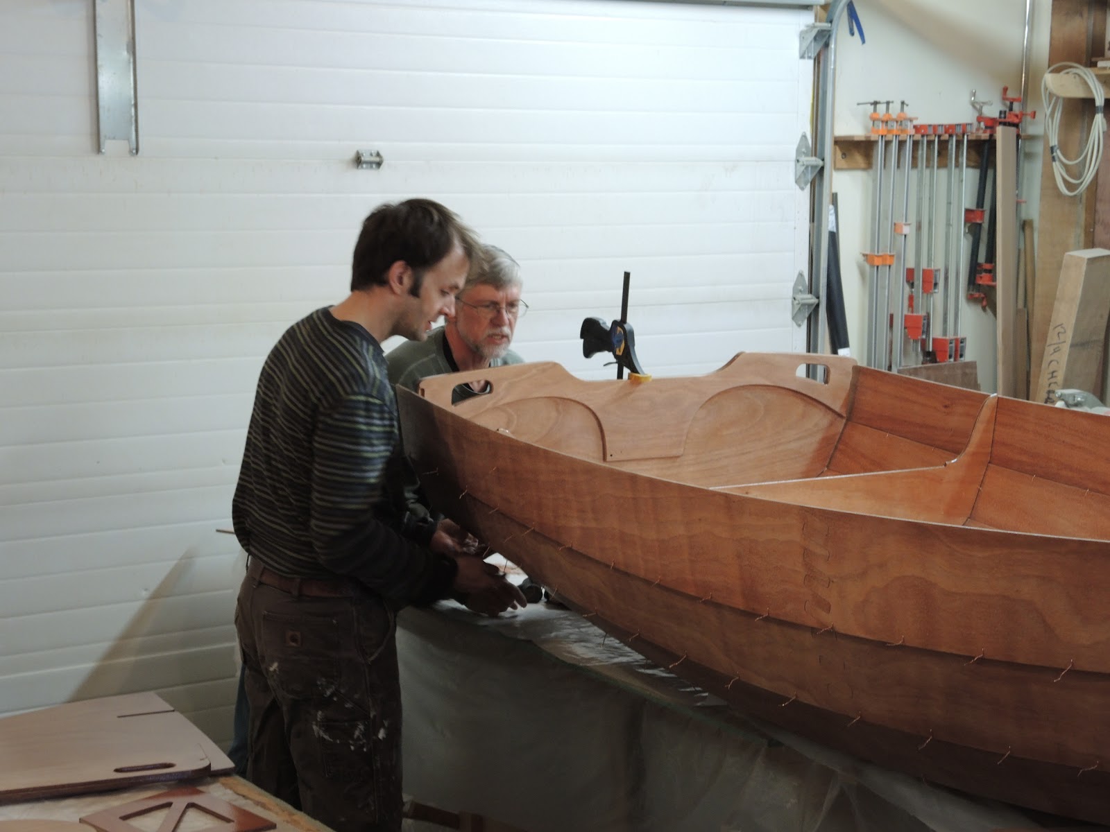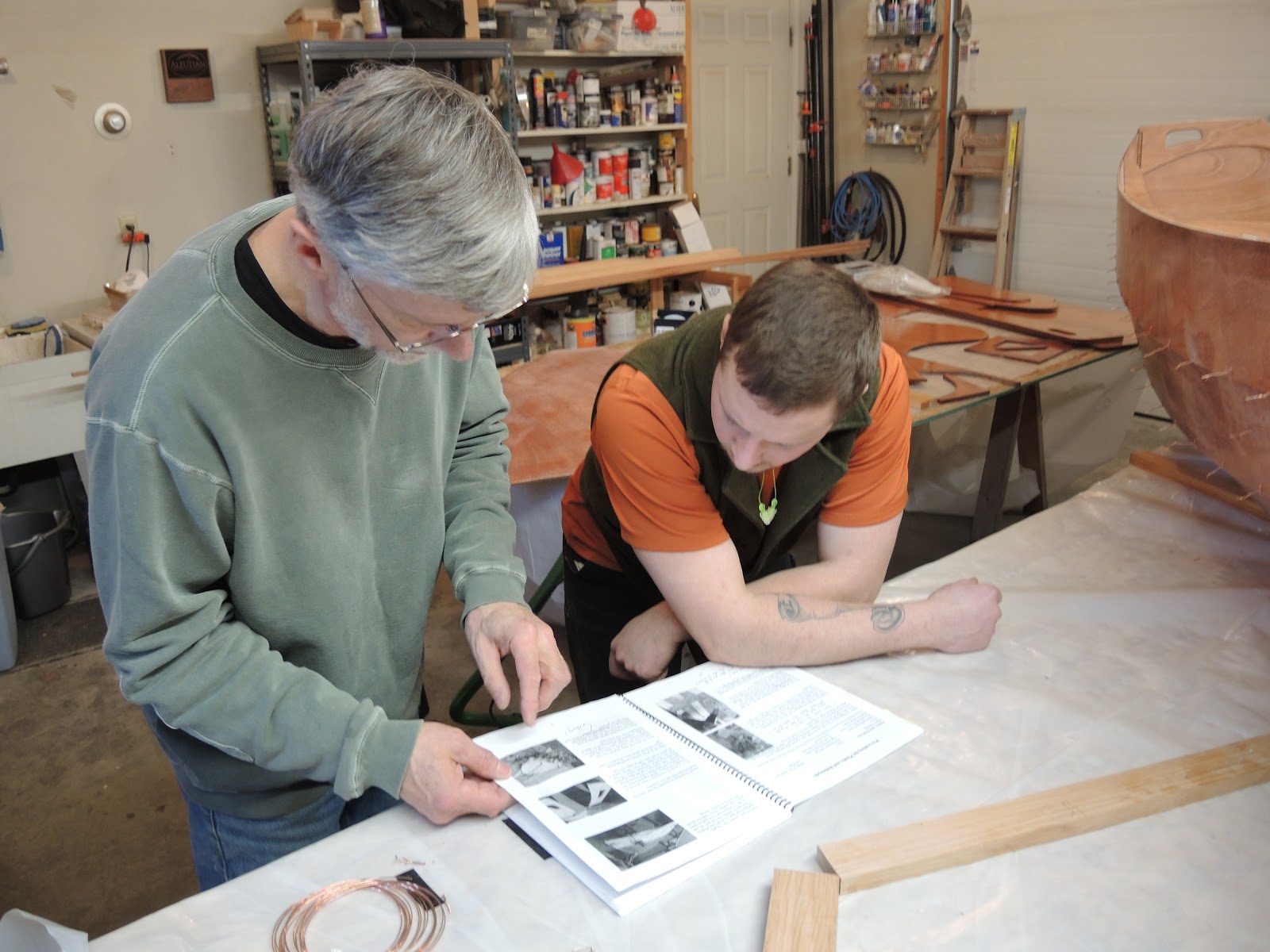 | Talking plans and epoxies with Dan. The hull must be light and strong. This is no lake boat…. |