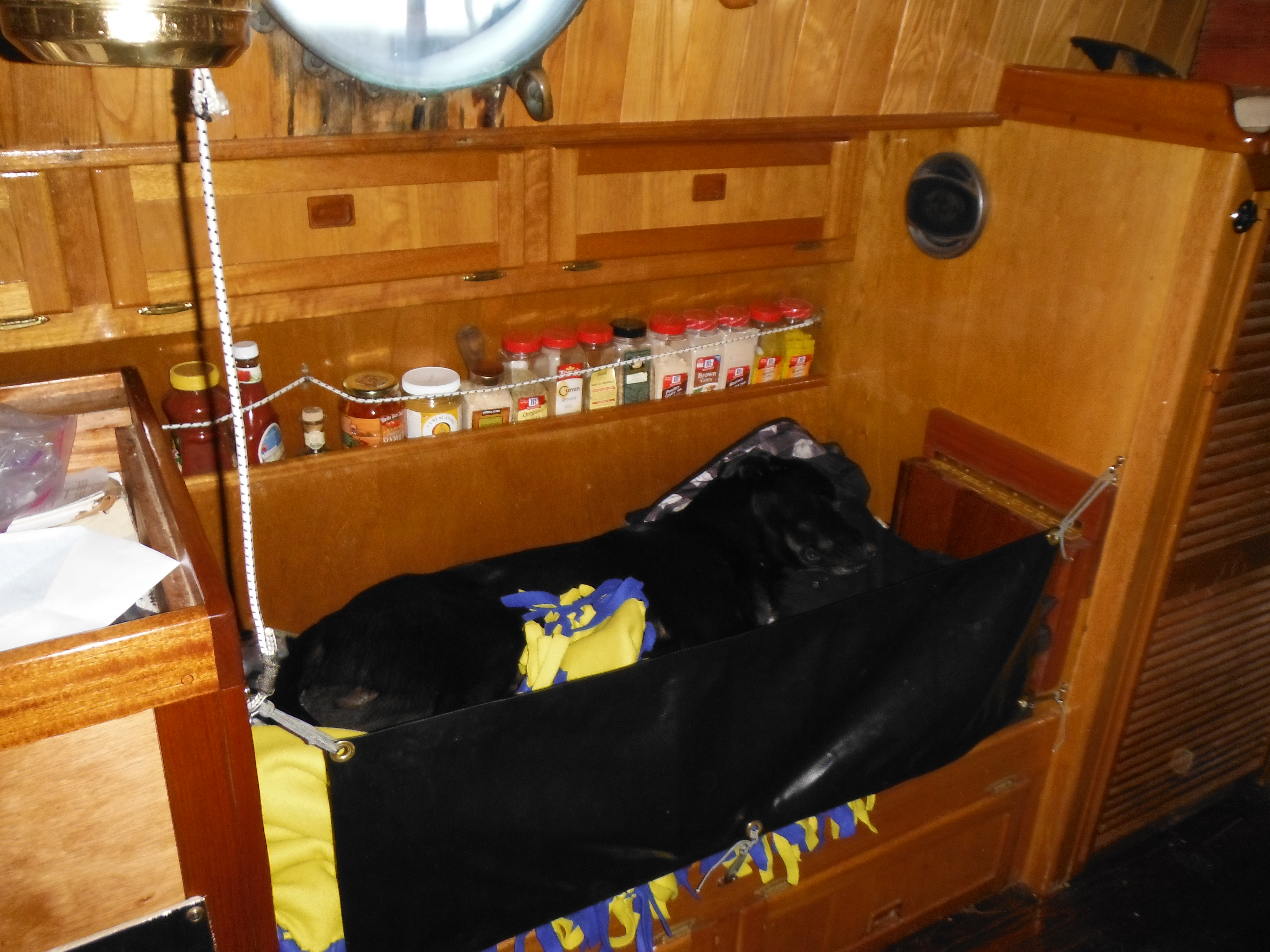 Dog . . . hope “Bruce” doesn’t take up too much space in the cabin . . . but it’s great that Stephen has a companion. He must be black . . . because he doesn’t show up in your photo. Thanks for keeping us informed of your progress. By the way, the tracker isn’t working. Still shows your position on the south end of Kodiak Island. Cheers, M&M