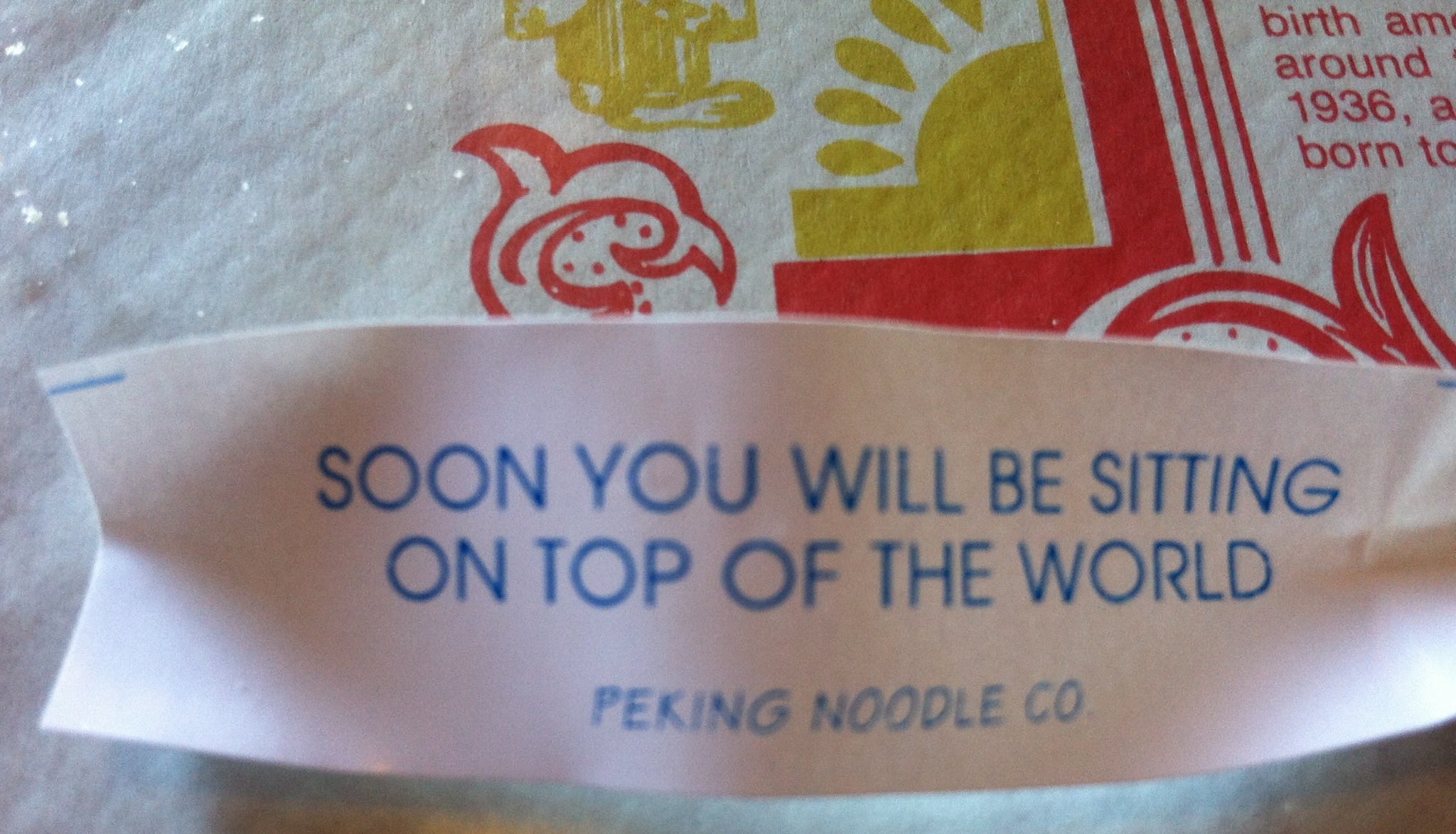 Yesterday afternoon I received a fortune cookie. The fortune within I crudely photographed and is the second of the two photographs in this post. When I read it initially, I thought, “oh, this must be referencing when we (Empiricus and crew) land in Greenland in the next few months”. It’s fun to suppose how the random fortune can be applied to your life and so, that was my fun little synopsis of what the fortune meant for me. I realize Greenland is not truly the top of the world, but it’s pretty far north, and I felt it reasonable to visualize a literal interpretation of the fortune thusly. So what bridges the first photograph to the second?
