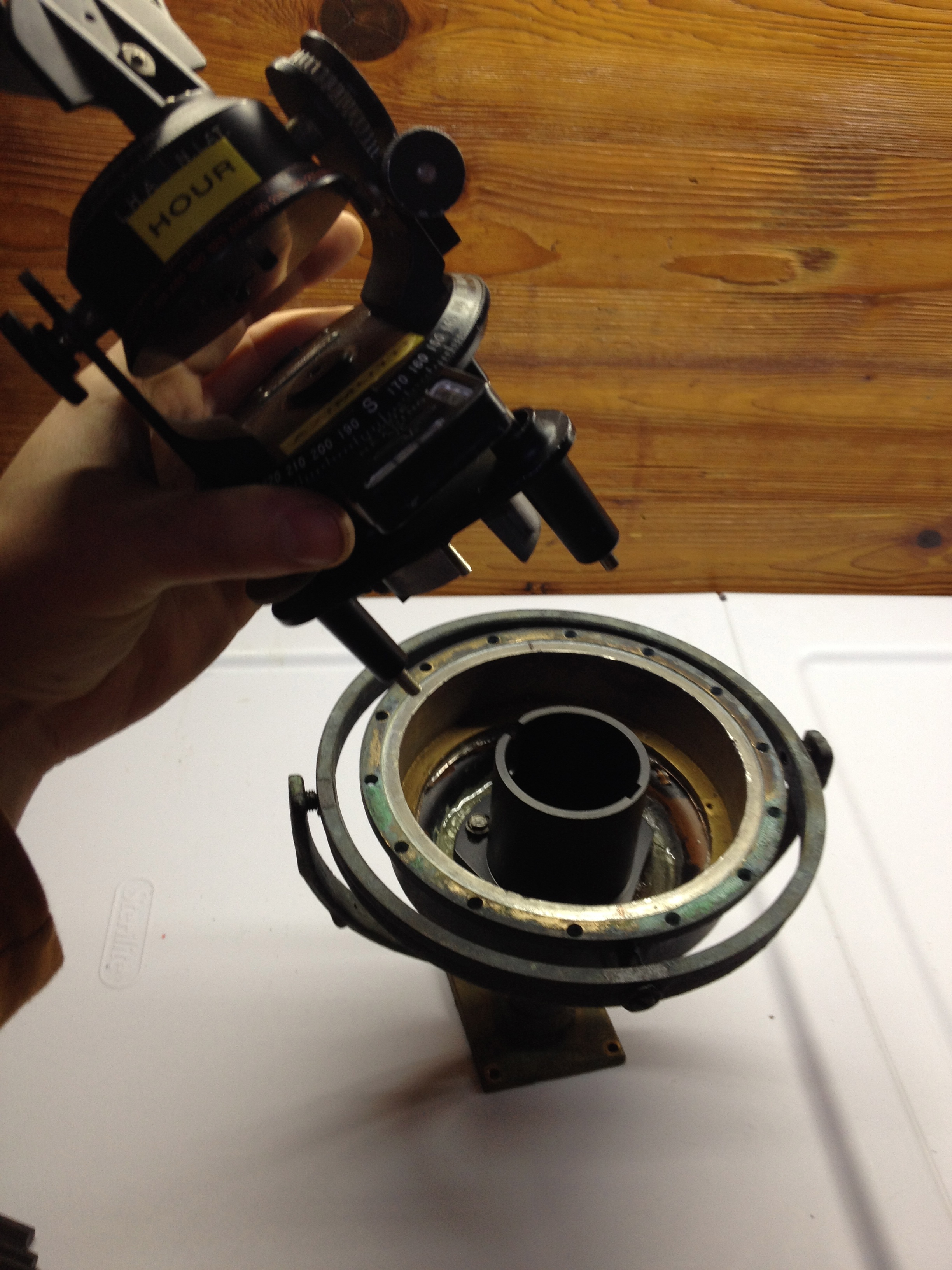 Once the gimbal was complete, I modified some gear box parts to create an on deck mounting socket. So the whole works can be stowed below.
