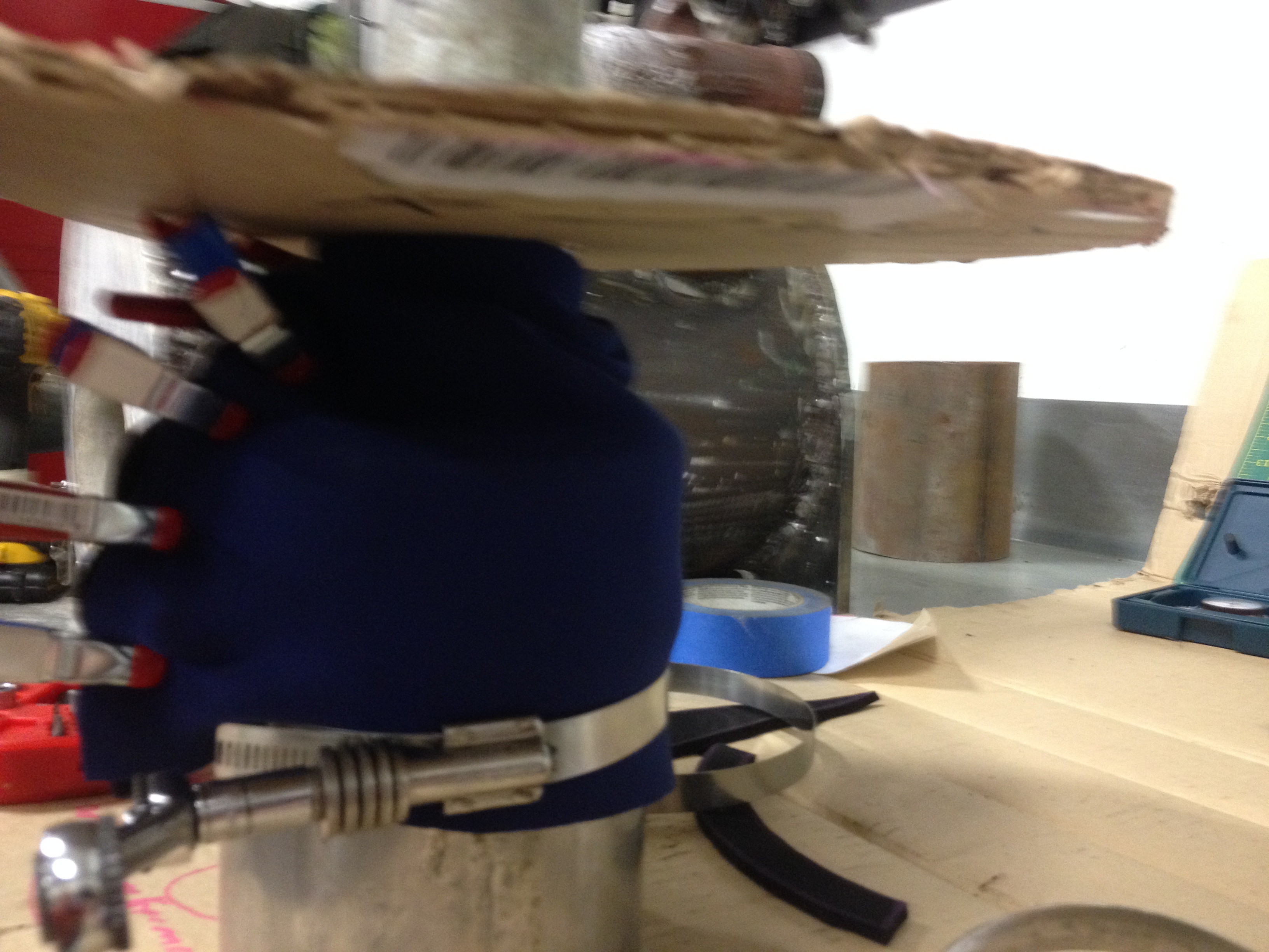 So I took some stainless steel T-clamps and modified them. I cut one to pieces and used the pieces to extend the hoop and made arms to hold in the plug.