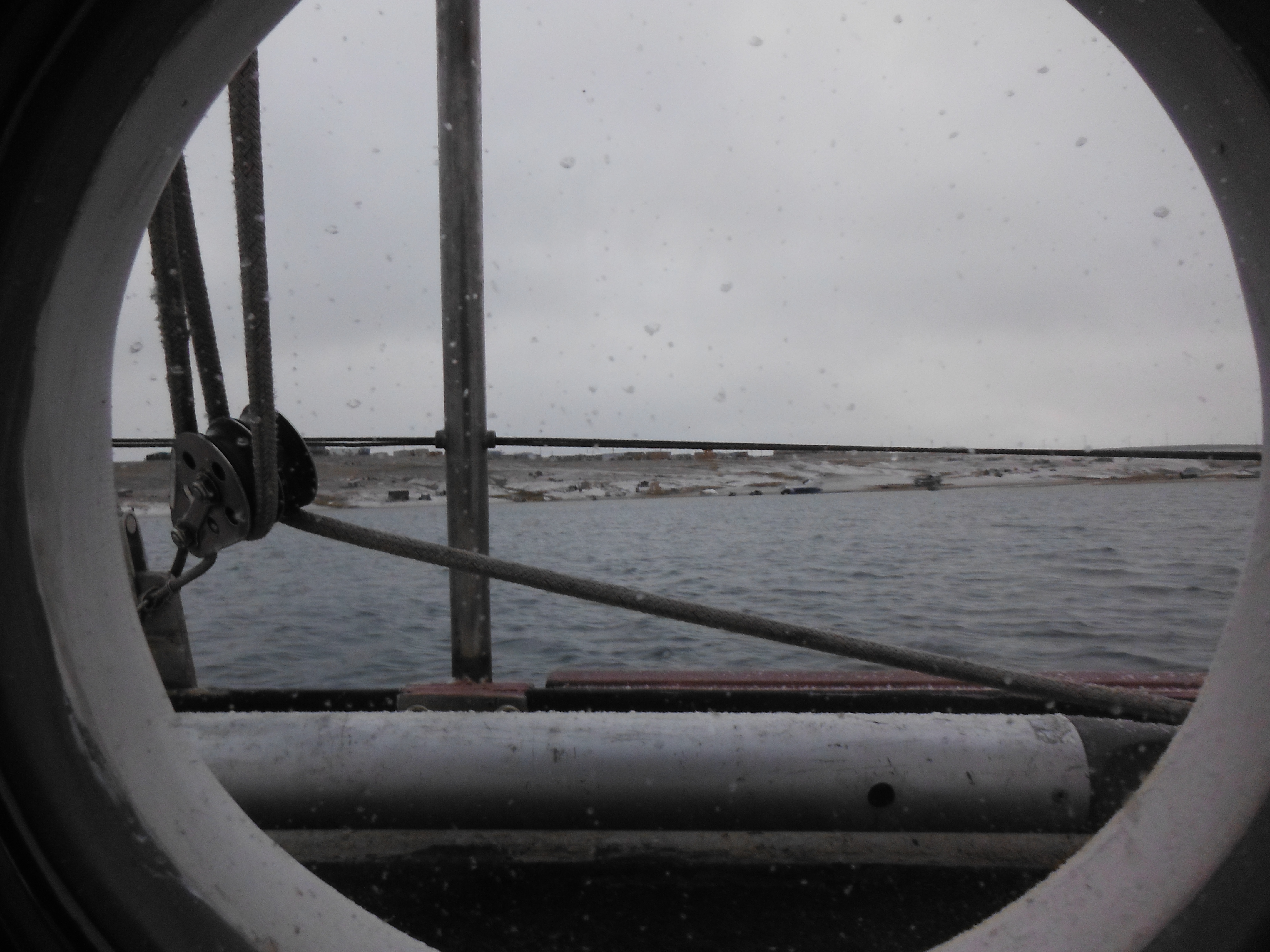 Well the gales subsided enough to row into town. But the only rowing needed was to slow us as we beached. Our anchor held strong, but the nights are getting darker and the ice was gnawing at my gut.