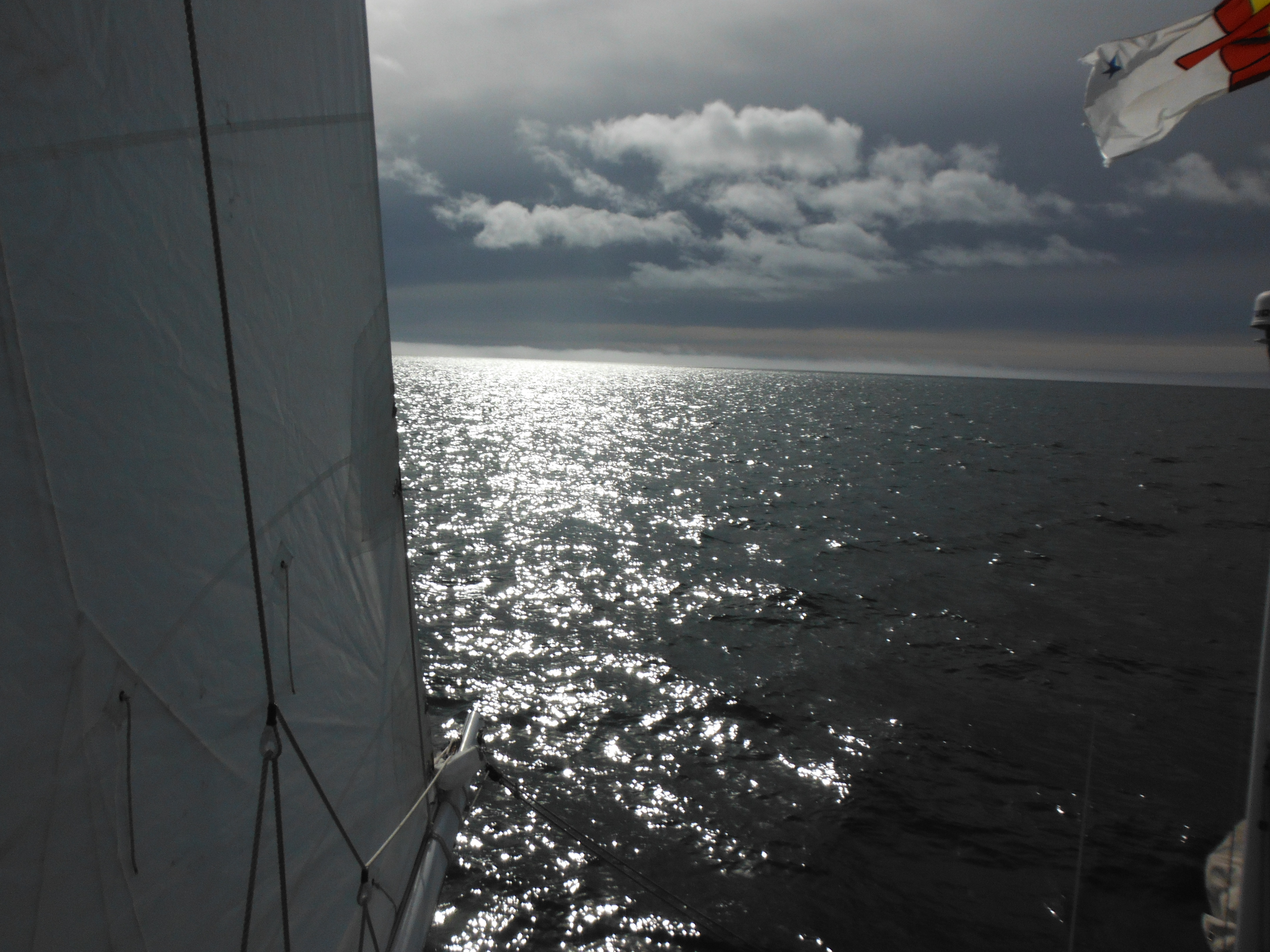Minutes later the main was hoisted to double reef, followed by the staysail, as we fell off the wind and shut down the engine.