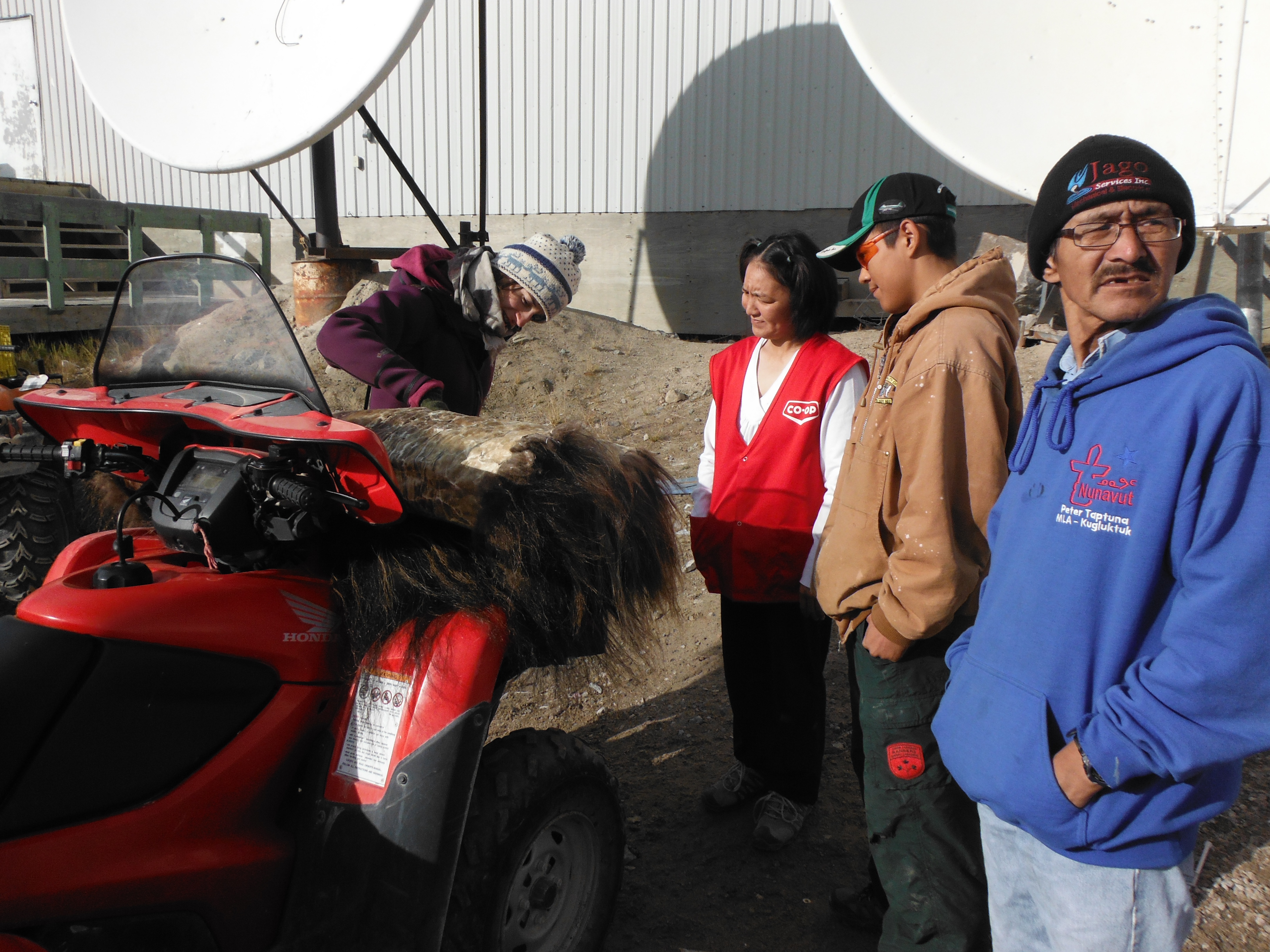 A comment on Tololak. Do communities get more friendly?! As we walked into town, we were stopped virtually every five minutes with people asking how they could help us with directions or information. Then while at the store, we met a nice woman, who’s son is a very good hunter. Shortly after, Samantha Brokered a deal on the most beautiful, home tanned Muskox hide you’ve ever seen. It is amazingly clean and scent free. The tanning was done by the buys Grandmother in the traditional way.